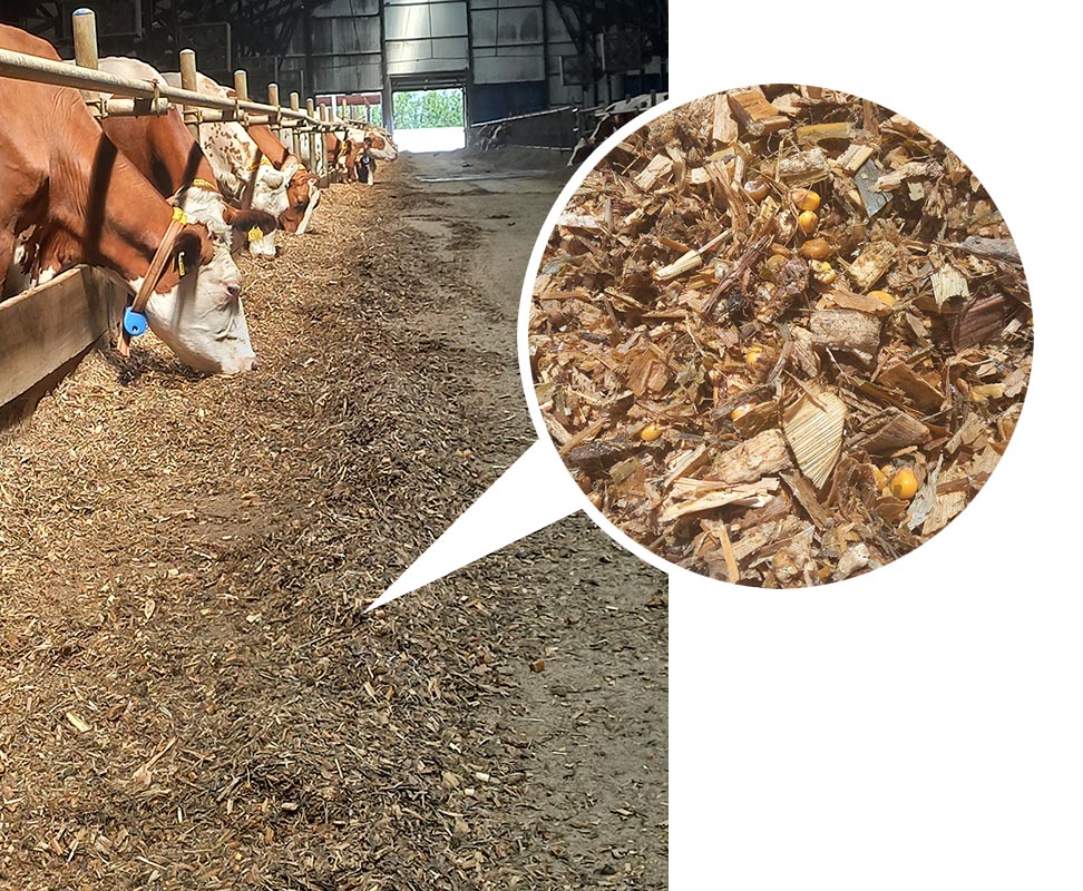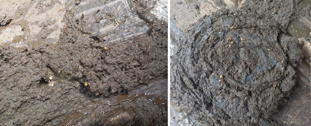 В навозе заметное количество непереваренных крупных частиц и целых зерен кукурузы. Эти данные указывают на то, что лабораторные исследования показали наличие крахмала в кукурузном силосе, однако микрофлора рубца коров не способна полностью его усвоить. В результате рацион оказывается менее сбалансированным, и продуктивность коров не соответствует прогнозируемой.