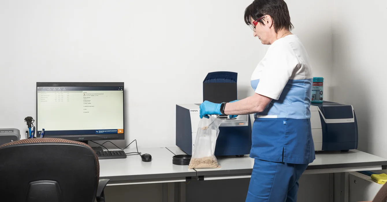 Лаборатория проводит анализы на содержание питательных веществ, вредных примесей в сырье и готовом корме. Для проведения анализов используются различные методы, включая химические и физические.