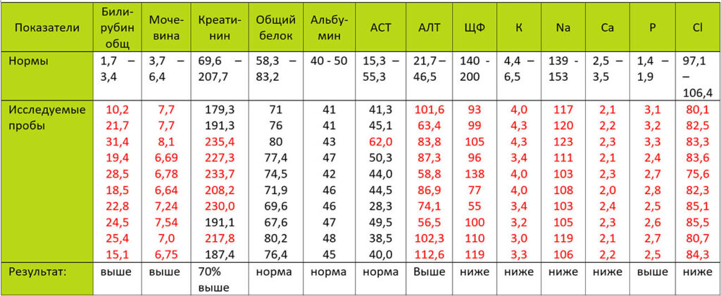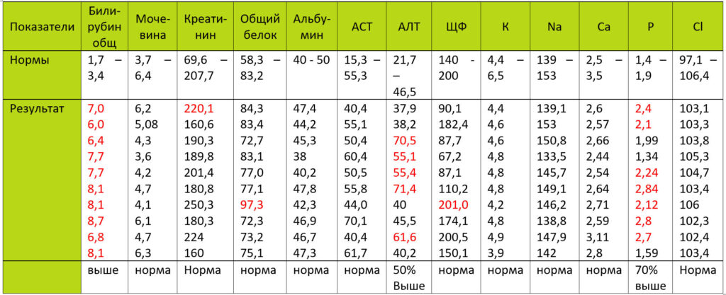 - Выше нормы остались общий билирубин и фосфор. И это нам указывает на то, что процессы восстановления функций органов и систем занимает продолжительный период.