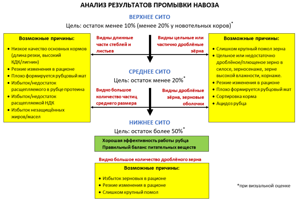 - Держа совок с образцом над верхним ситом под углом 30вымойте из него примерно 25% навоза