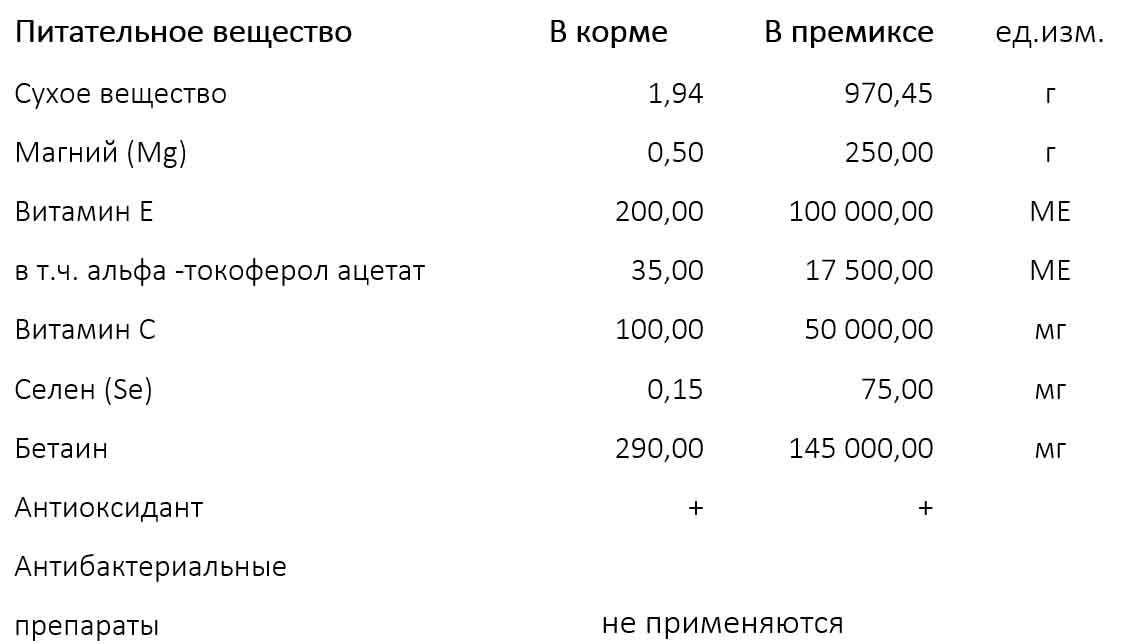- Позволяет избежать потери продуктивности животных при воздействии на них стресс-факторов;