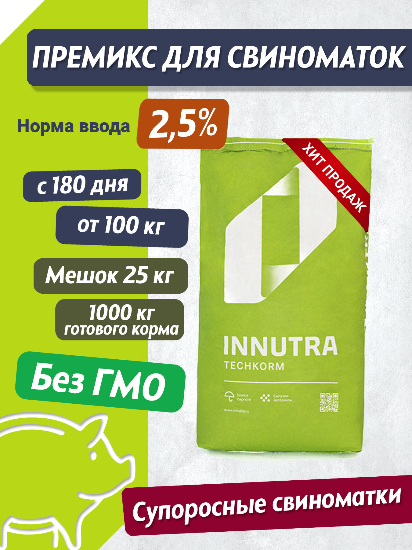 2,5% полнорационный премикс для супоросных свиноматок предназначен для использования в рационах при невозможности введения в рацион синтетических аминокислот.