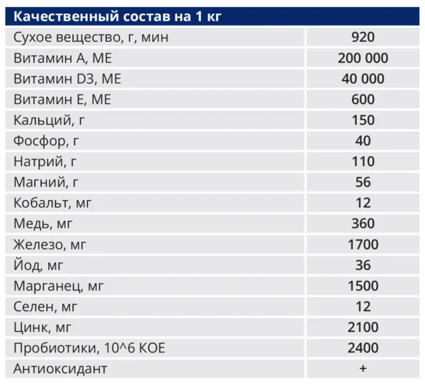 - Снижение затрат агропредприятия на витаминно-минеральные премиксы.