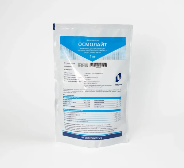 Смешать 60 г Осмолайт® с двумя литрами тёплой воды (25-35 °C) и выпаивать между кормлениями 2 раза в день. Рекомендуется выпаивать Осмолайт 3-5 дней (до устранения расстройства пищеварения).